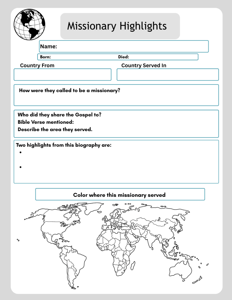 Hello, here is a resource I made for writing about missionaries.